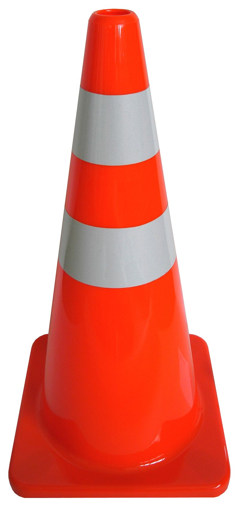 Flexible, durable PVC cone with square base won't roll away even knocked over.